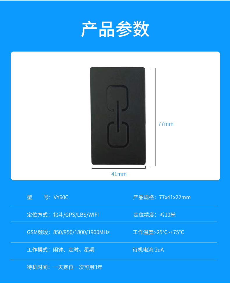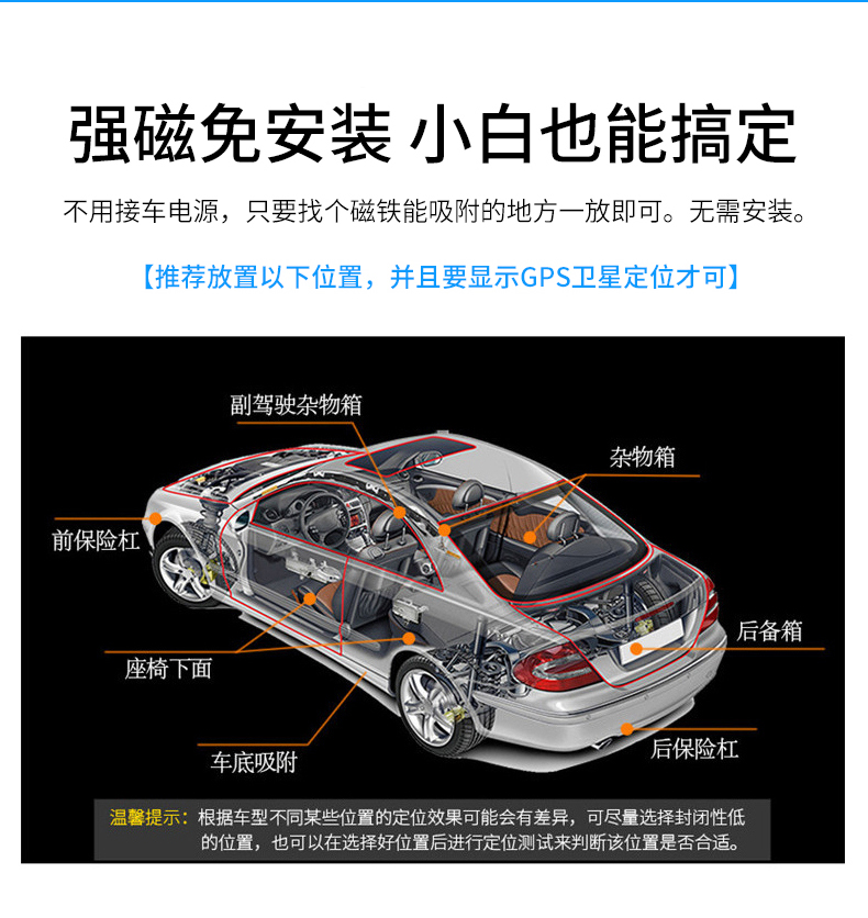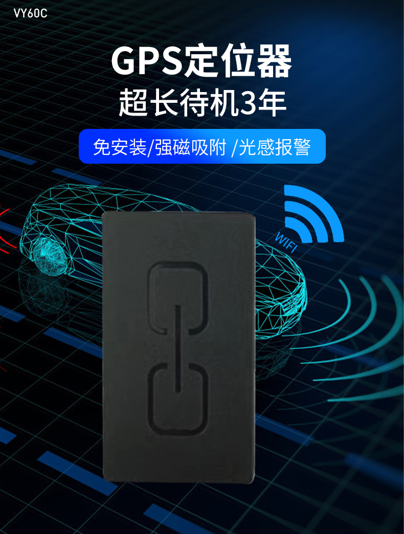 GPS定位器超长待机免安装I北斗gps追跟器小体积三年待机强磁吸附:VY10C