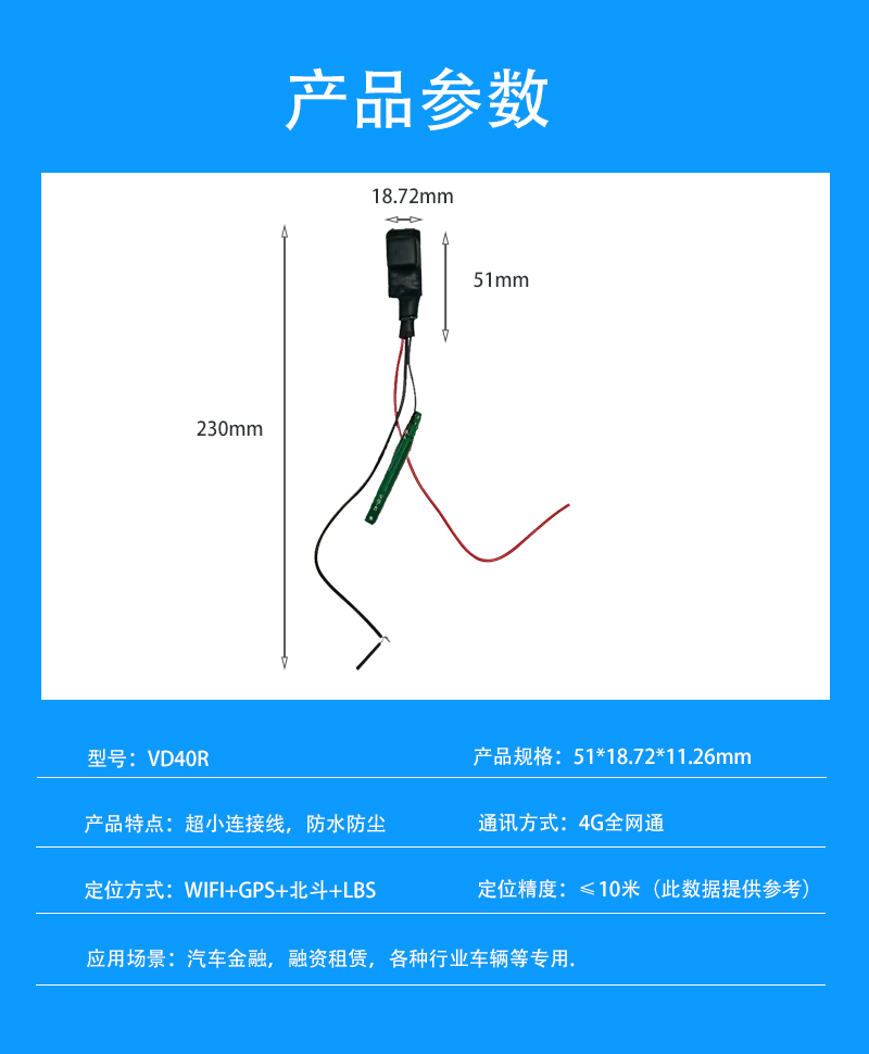 GPS定位器接线车载纯北斗定位器电动车摩托车汽车北斗定位装置:VD40